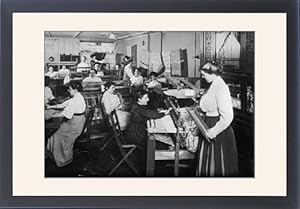 Product Description : Size: 30 x20 Framed Print30 x20 Framed Print, Black Satin Frame Off-White Digital Mat. showing Blind women weaving at looms accompanied by an orchestrion. Blind women weaving at looms accompanied by an orchestrion, a self playing musical instrument, at right. Photo taken by Byron Company for the New York Association for the Blind. Chosen by Everett Collection. 30 x20 wooden frame with digital mat and RA4 print. Finished back including brown backing paper, hanging