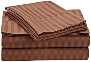 Product Description : Size: King | Color: MochaSilky soft 500 count stripe sateen sheet set made of single ply ultra soft 100-percent egyptian cotton yarn woven on state of the art air jet looms to give you comfortable sleep and long wear. The king size mocha color flat sheet and pillow cases are finished with a 4-inch hem and the fully elastic fitted sheet stays secure on a mattress up to 18-inch thick. These sheets are easy care: wash in lukewarm water; tumble dry on low heat.