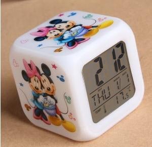 Product Description : This mickey and minne alarm clock is small and packs a punch, it has LED lights which change colors to provide a soothing glow to the clock. The unit is light weight and great for a starting alarm and come with a english instruction. More Disney alarm clock in our store,welcome to shop.